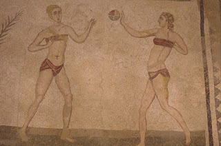เกิดขึ้นในศตวรรษที่ 4 จากหลักฐานภาพวาดโมเสคที่ Villa Romana Del Casale ในประเทศอิตาลี แสดงภาพหญิงสาวสองคนกำลังลั้ลลากับลูกบอลชายหายด้วยชุดสองท่อน แต่ถ้าเป็นชุดบิกินีแบบโมเดิร์น ต้องขอบคุณ Jacques Heim ที่ได้ออกแบบ และตั้งชื่อชุดว่ายน้ำตัวกะจิ๋วหลิวให้ผู้ชายได้วาบหวิวเล่นว่า อะตอม (Atom) และ ในปีเดียวกัน Louis Reard ที่ตั้งชื่อว่าชุดว่า Bikini Atol จนเราเรียกว่าบิกินีจนคุ้นชิน